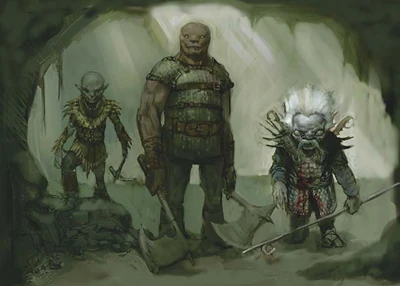 Обитатели Подземья: свирфнеблин, слит и дерро. Иллюстрация из книги «Underdark».