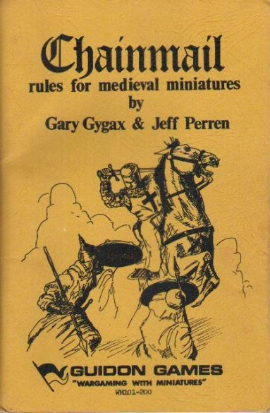 Самое первое издание варгейма «Chainmail», из которого потом выросла ролевая игра «Dungeons & Dragons», вышло в 1971 году как буклет из 62 страниц, 47 из которых были пронумерованы, а остальные содержали «фэнтезийное приложение» с несколькими монстрами (элементалами, хоббитами, троллями, великанами и драконами разных цветов), шестью заклинаниями (fireball, lightning bolt, polymorph, phantasmal forces и т. д.) и прочими элементами, уводящими игру от обычного средневекового варгейма с миниатюрками, на которое указывало название на обложке. Монстры были большей частью взяты из книг Толкина, но классифицировались по Муркоку (по схеме хаос-порядок). Иллюстрациями служили военные фотографии и рисунки владельца Guidon Games, Дона Лоури.